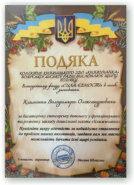 06 грудня 2023 року в День Святого Миколая, Благодійний фонд “СИЛА ЄДНОСТІ” в особі його засновника Клименка завитав до Княжицького закладу дошкільної освіти “Княжичанка” Боярської міської ради.
