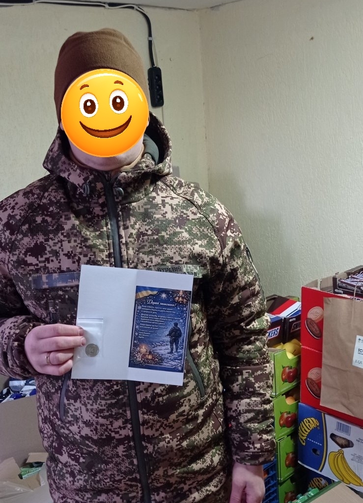 Захисникам передали різдвяні подарунки — смаколики, фрукти та продуктові набори, а також пам’ятні монети як символ вдячності, підтримки й поваги до служби. Кожен подарунок супроводжувався теплими словами та різдвяними листівками з побажаннями здоров’я, сили духу й якнайшвидшого повернення додому з перемогою.